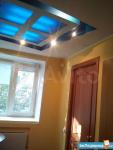 Подиумные потолки с точечными светильниками, ламинат.