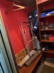 В квартире есть диван, тумба под тв, кухонный гарнитур, холодильник, плита, шкаф для одежды.