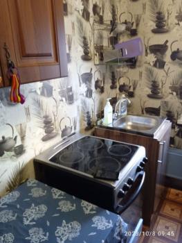 В квартире 2 дивана, которые раскладываются, две стенки, холодильник, стиралка автомат, пылесос, телевизор, мини прихожая, электроплита, эл. Чайник, микроволновая печь, столы, стулья, рядом магазин Комета.