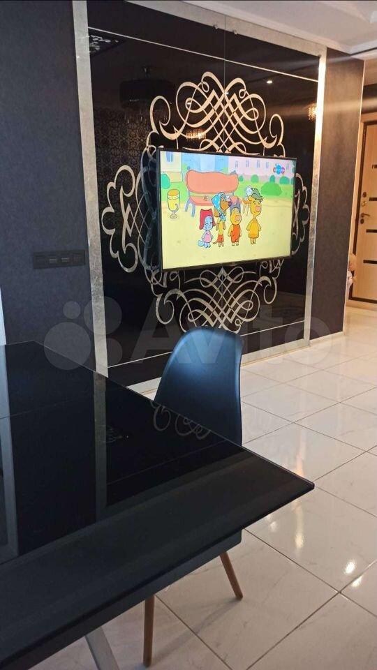 Полностью меблированная. Пластиковые окна, везде москитные сетки и жалюзи, кондиционер. Пол ламинат. Зал и кухня объединены. Кухонный гарнитур с системой отрывания Тiр-оn, вся бытовая техника, холодильник, варочная панель, духовой шкаф, вытяжка, микроволновка. Столовые приборы и посуда в наборе. Встроенная мебель: шкафы-купе в спальне и в зале. Шумоизоляционные межкомнатные двери. В ванной джакузи с гидромассажем, подсветка. Лоджия утепленная, остекление пластик.