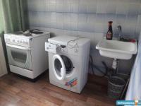 санузел - совмещённый, мебель - кухня, хранение одежды, спальные места, холодильник, плита, микроволновка, стиральная машина, телевизор.