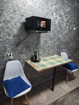 санузел - совмещённый, мебель - кухня, хранение одежды, спальные места, холодильник, плита, микроволновка, стиральная машина, телевизор.