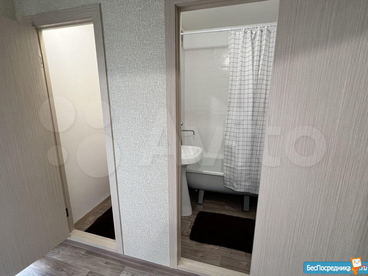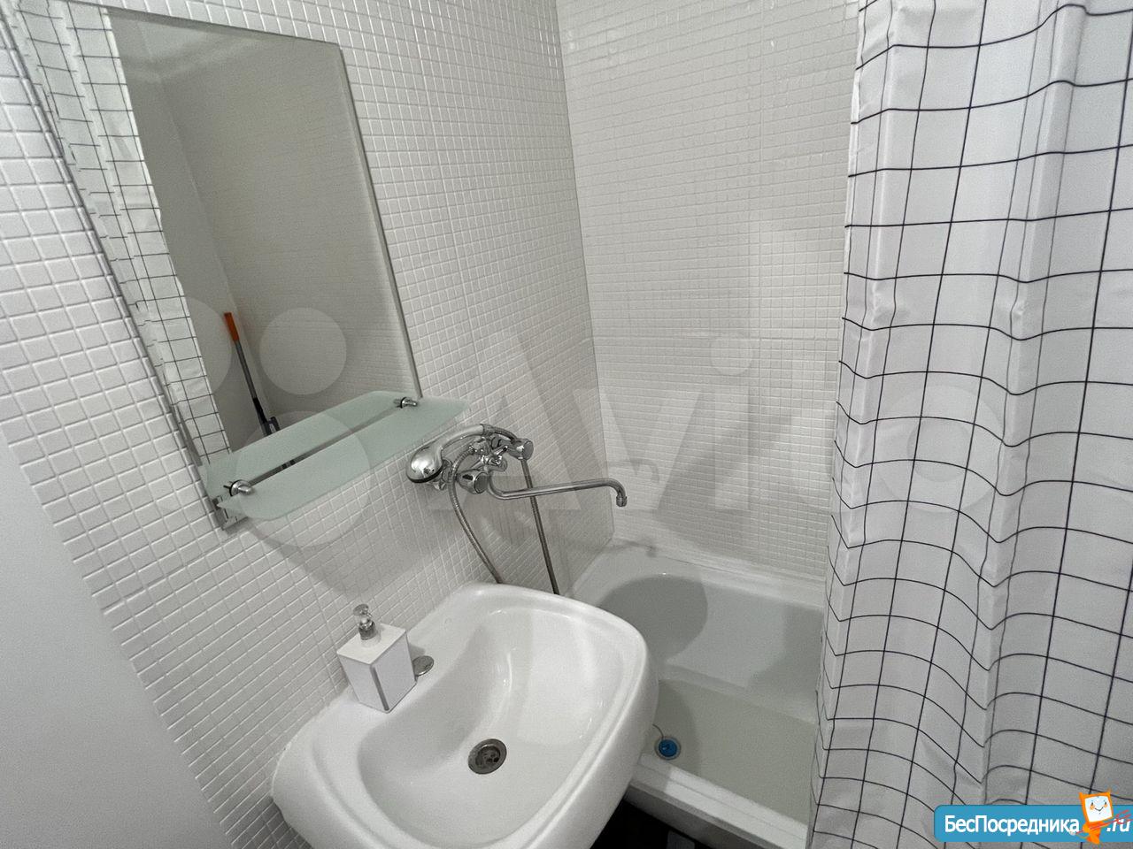 Санузел раздельный. В ванной комнате ванна, раковина, зеркало. Стиральную машину установим по запросу.