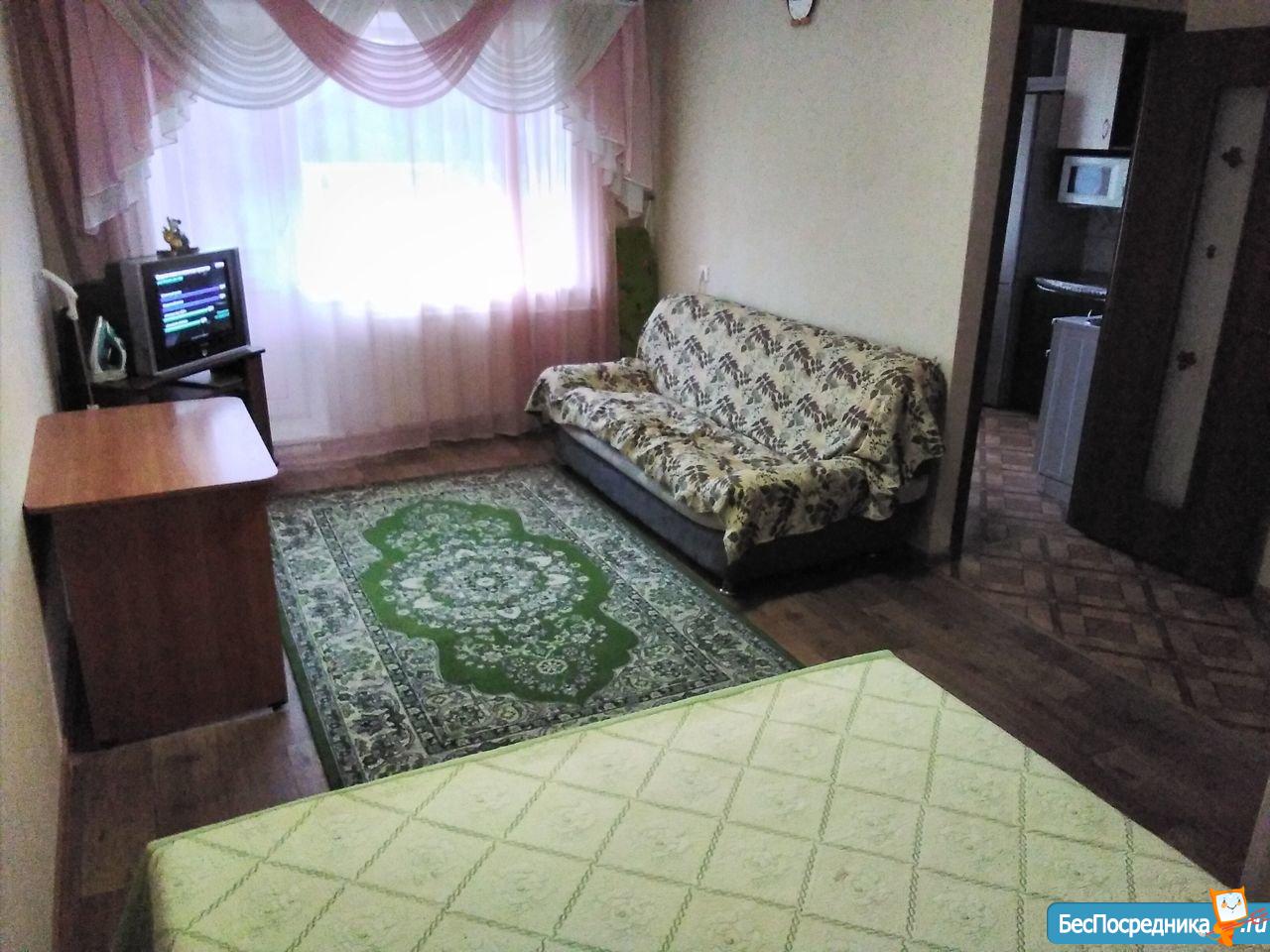 На длительный срок порядочным людям, состояние обычное, 1 окно пластиковое, 1 деревянное, балкон застеклен. Из мебели: 2 спальная кровать, диван, комод, шкаф(темнушка), стол обеденный,стол (раскладушка), угловой диван на кухне,кухонный небольшой гарнитур Оплата 12500+счетчики воды и электричества.