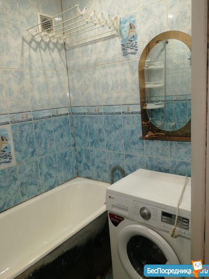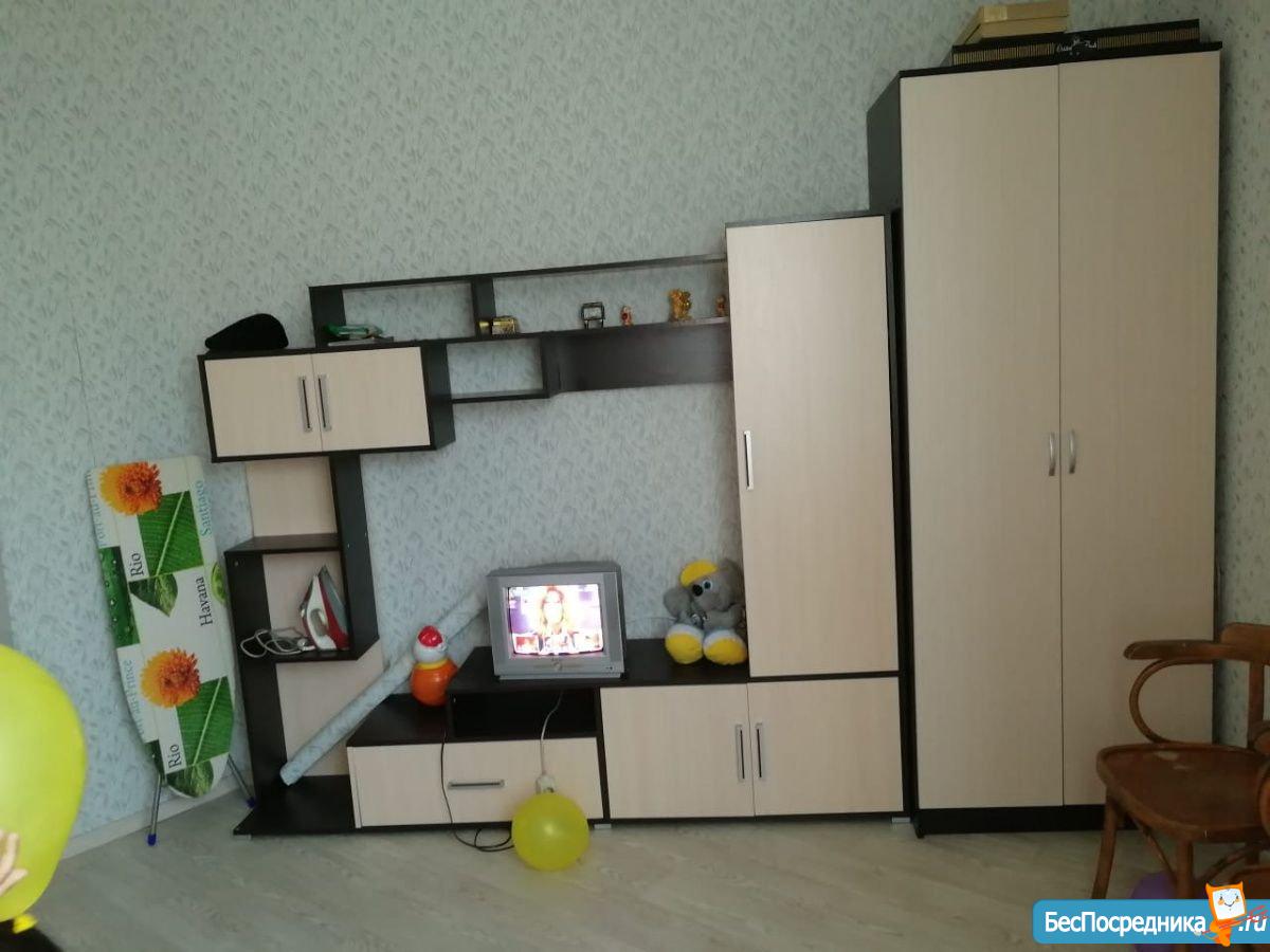 Есть все для комфортного проживания: кровать, шкаф-купе, комод с зеркалом, телевизор, холодильник, стенка, кухонный гарнитур, стиральная машинка. Ванна с туалетом раздельно.
