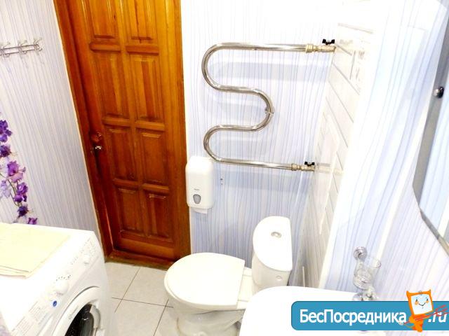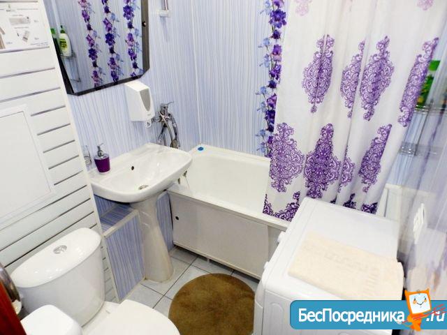 Санузел совмещенный, оснащен современной сантехникой и стиральной машиной. Имеется водонагреватель. Из окон открывается приятный вид.