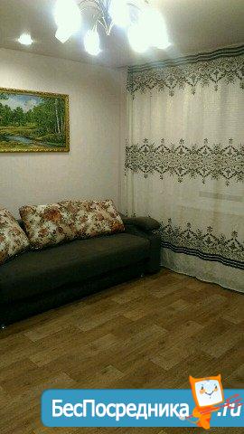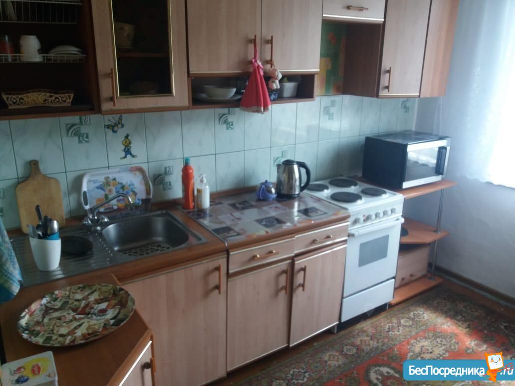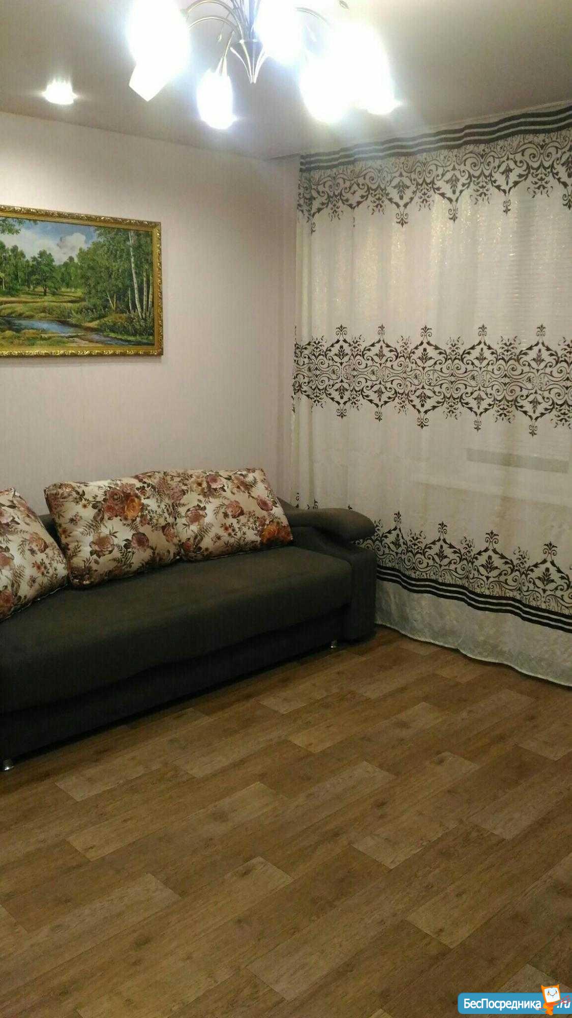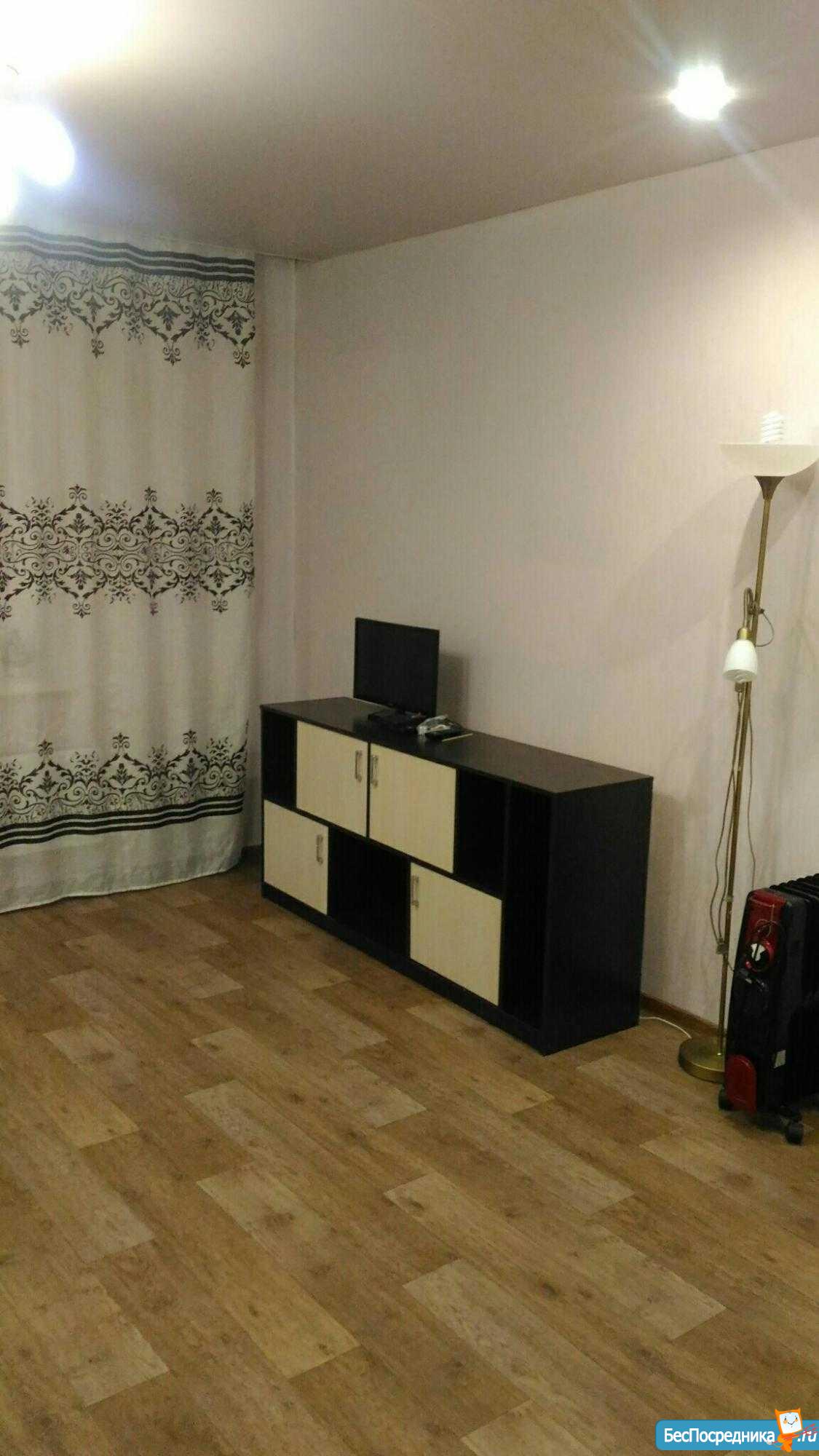 В квартире есть: диван 4 месяца эксплуатации всего, вместительный шкаф с зеркалами, 2 телевизора (в зале и на кухне), на кухне современный модульный диван, холодильник, микроволновая печь, печка, стиральная машинка, шкаф-купе-кладовая, письменный стол, односпальная кровать, шведская стенка, в ванной есть душевой гарнитур - лейка для душа стандартная и лейка большая, обогреватель (хотя в квартире очень тепло). Wi-fi роутер + к телевизорам подключены цифровые приставки. Спокойный район. Хорошие соседи. В двух шагах 2 детских сада, школа, ТЦ "Парус", площадь Торжеств. Подробности по телефону. Оплата 14000 + счётчики.