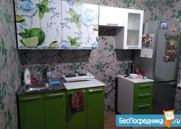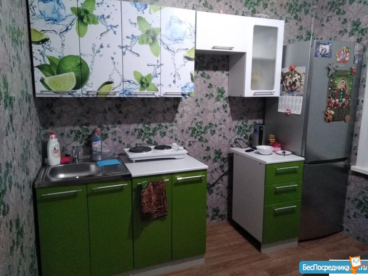 Однокомнатная квартира в новостройке, до этого жили только двое жильцов, полностью мебелированная (холодильник, плита, микроволновка, кух. гарнитур, кух. стол, прихожая, шкаф в комнате, диван, кресло, стулья).