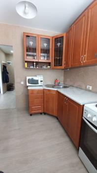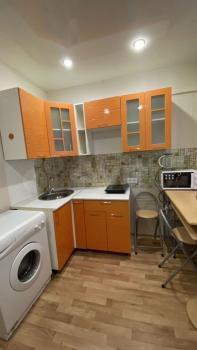 В квартире современные сантехника и приборы отопления, все пластиковые окна, высота потолков 2,67 м. В зале натяжной потолок, раскладной диван и 2 кресла. В спальне большой шкаф купе, 2х спальная кровать. В кухне мягкий уголок, новый холодильник, печь BECO, СВЧ. Стиральная машина Indesit, постельное, посуда по договоренности. Оплата счетчиков отдельно. Без комиссии, только на длительный срок от полугода. Залог 8