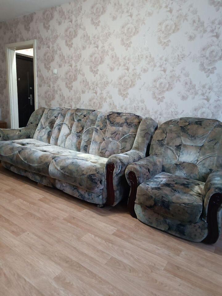 на длительный срок семейной паре с детьми. В квартире все как на фото. Диван двухместный, кресло- кровать, телевизор.