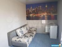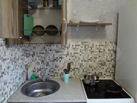 Кухня оборудована необходимой бытовой техникой. В комнате установлен вместительный шкаф для хранения вещей. Санузел совмещенный.