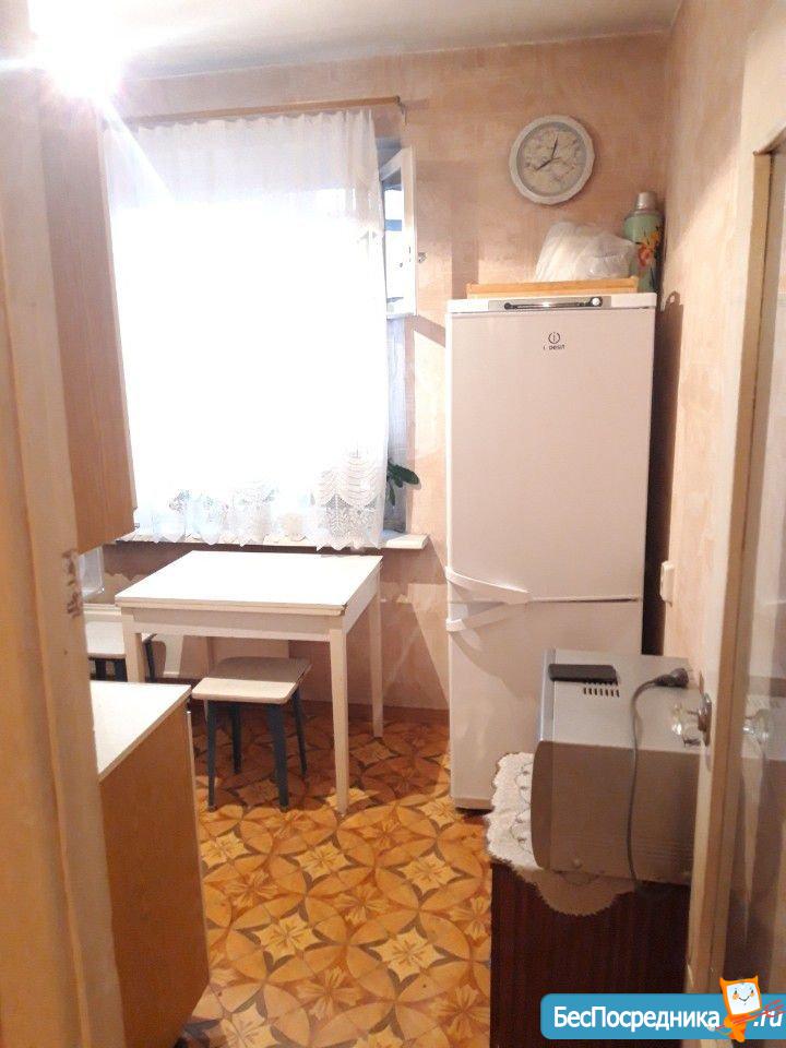 Сдаётся 1-комнатная квартира - чистая светлая, уютная, в отличном месте, есть кухонный гарнитур и плитка, холодильник и диван.