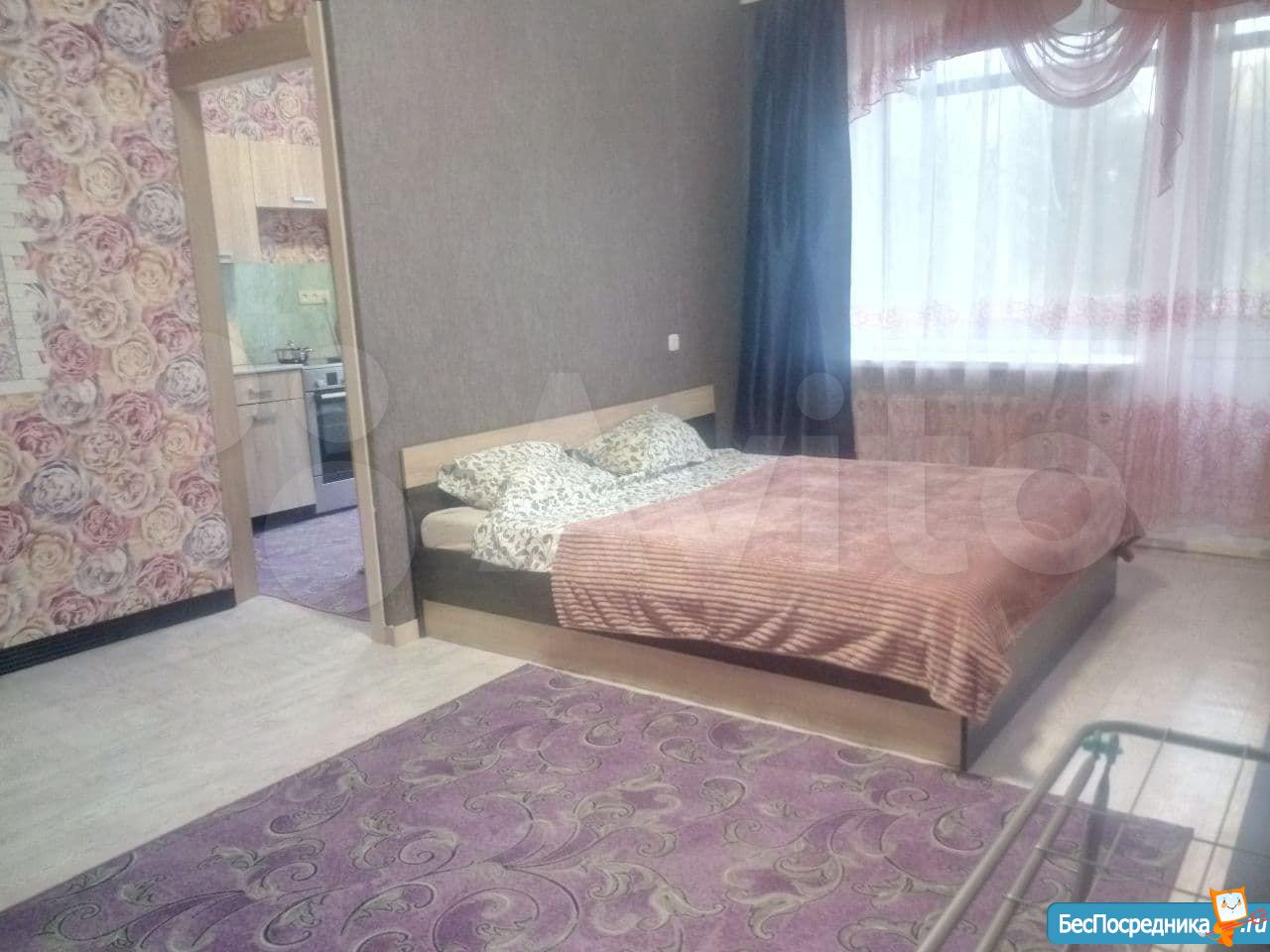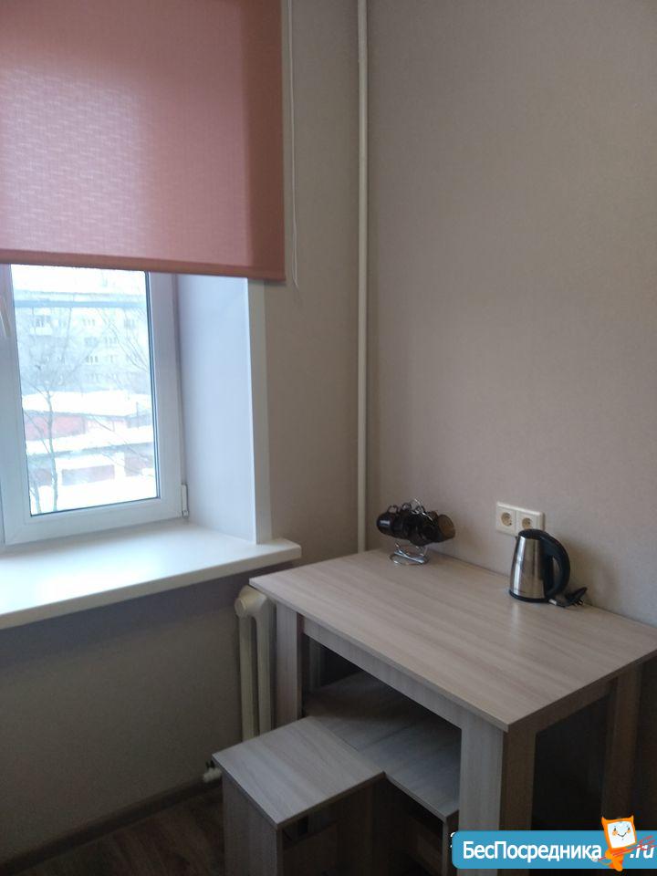 Квартира после ремонта,натяжные потолки, линолеум. Вся мебель новая, имеется:двухспальная кровать, шкаф для одежды, мебельная горка, диван, кухонный гарнитур, обеденный стол, 4 табурета. Также есть столовая и частично кухонная посуда, чайник.