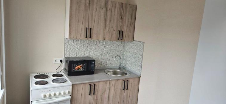 санузел - совмещённый, мебель - кухня, хранение одежды, спальные места, холодильник, плита, микроволновка, стиральная машина.