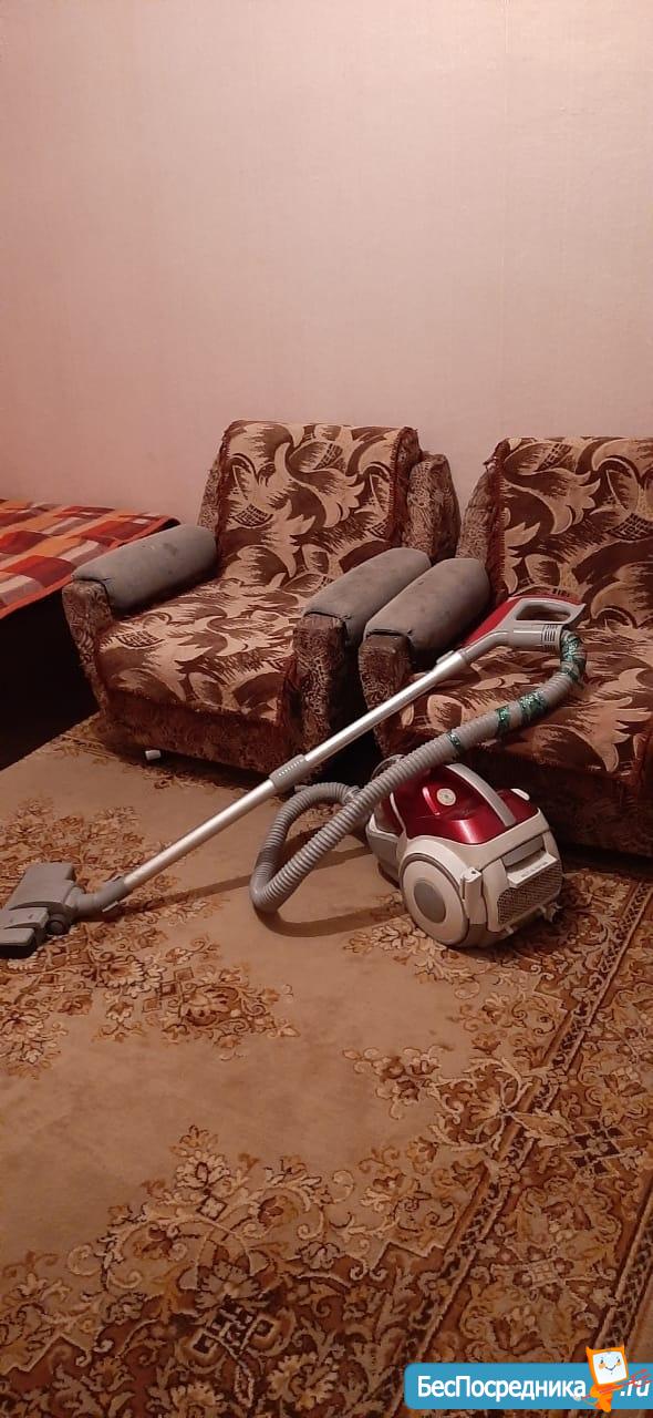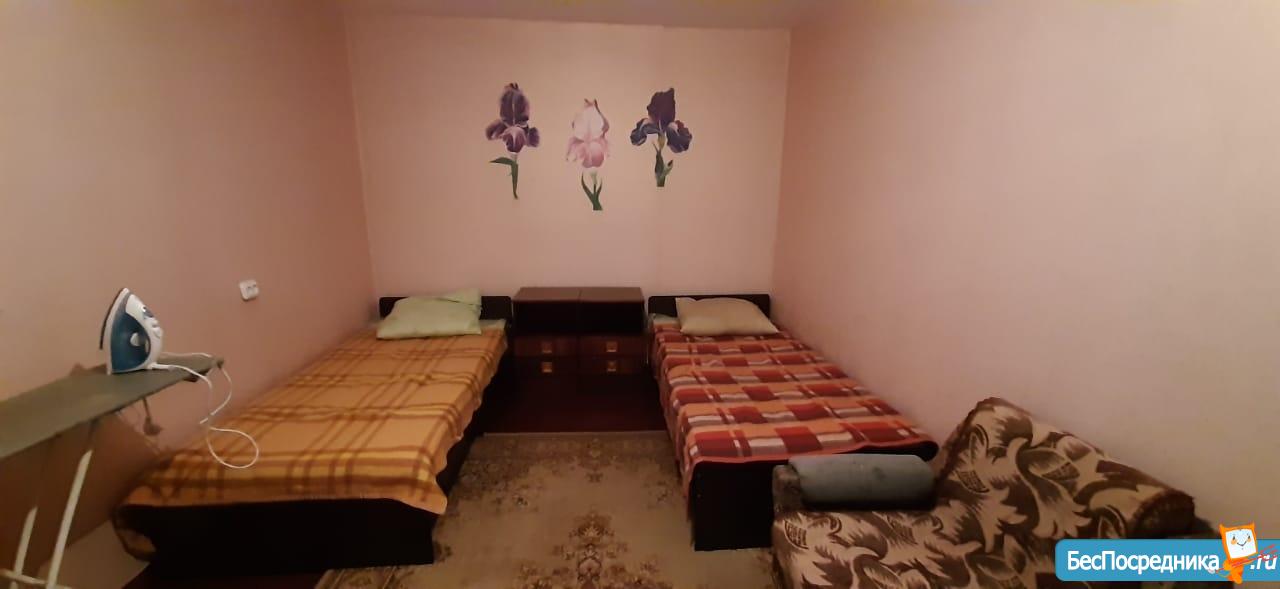 В квартире есть 6 спальных мест, два кресла-кровати, мягкая мебель и раскладной диван, стиральная машина автомат, пылесос, холодильник, телевизор, микроволновая печь, прихожая, стенка ,электропечь. Спальный район рядом автобусная остановка, конечная, школа, д сад, сеть магазинов, окна всё во двор.