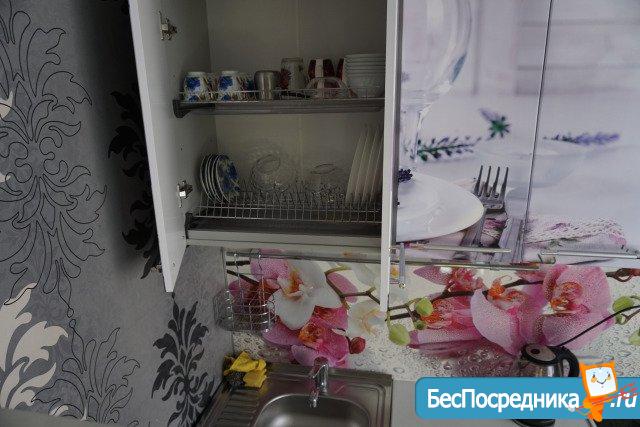Кухня полностью укомплектована всем необходимым, есть даже еда (неоткрытая)