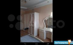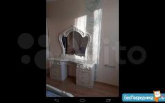 Отдельная просторная спальня с кроватью 160x200 и ортопедическим матрасом, большой шкаф - купе, туалетный столик с зеркалом и освещением, подвесная тумба, пастельные принадлежности (подушки, одеяло, постельное белье).