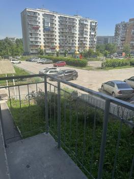 Балкон выходит во двор ( с комнаты , кухни и балкона видна детская площадка во дворе и парковка под шлагбаумом ( есть огороженная доп парковка во дворе и огромная открытая паковка за домом.