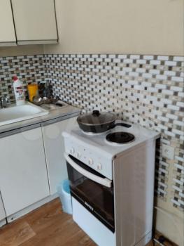 Есть кухонный гарнитур, холодильник,печка, диван, 10000+счётчики свет и вода