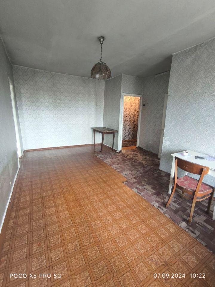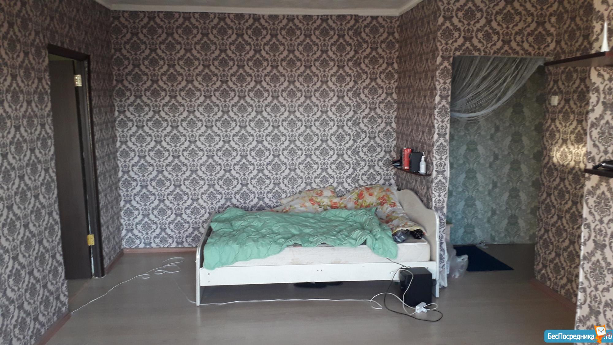 Из мебели в квартире шкаф, кровать, стол. Ремонт старый, деревянные окна, двери. Есть балкон. Рядом с домом детские сады, школы в 10 мин от дома. Оплата аренды + свет, вода.