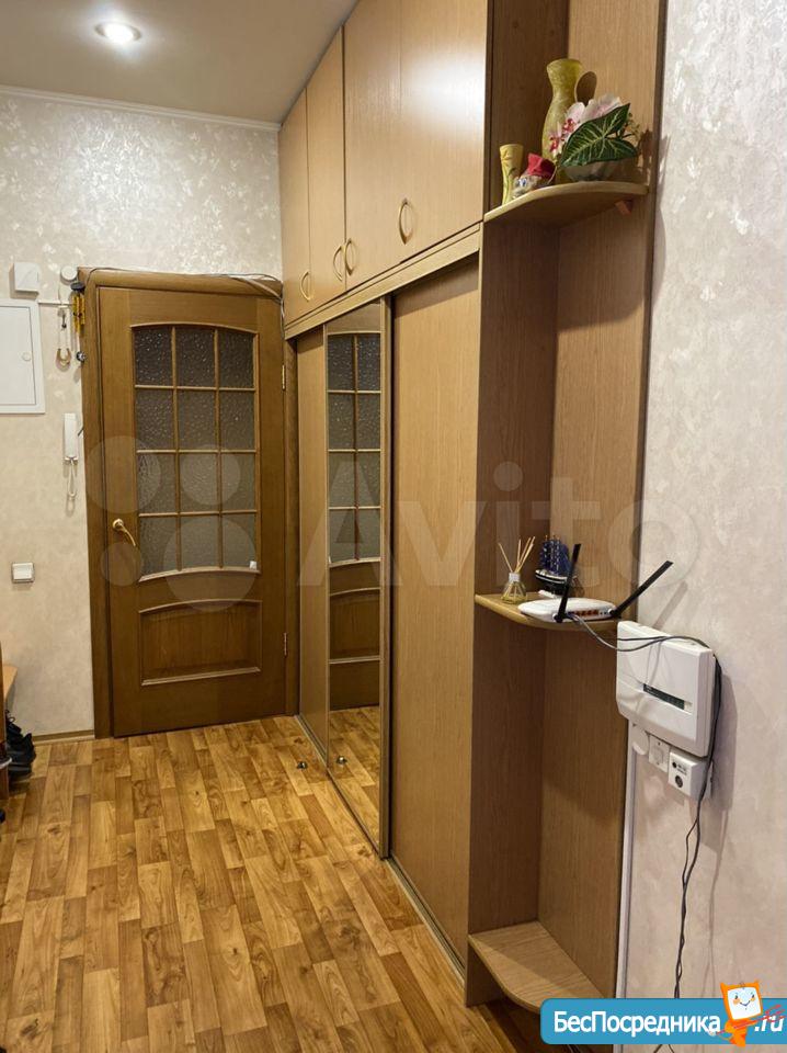 Большая кухня, просторный коридор со встроенным шкафом и зеркалом в пол. Все необходимое есть для жизни.