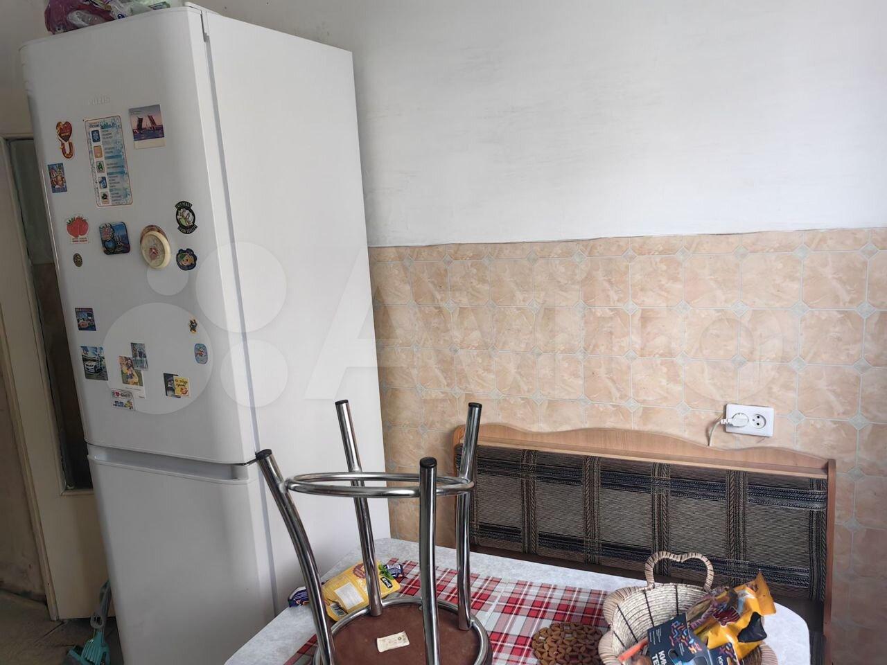 Кухня площадью 9 м² оборудована необходимой бытовой техникой, включая холодильник и стиральную машину. Ванная комната и туалет раздельные, выполнены в светлых тонах с косметическим ремонтом.