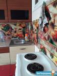 Кухня оборудована необходимой техникой, включая холодильник и плиту. Санузел раздельный, выполнен в светлых тонах.