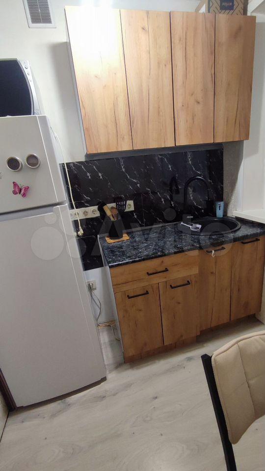 Из техники - холодильник, чайник, плита и микроволновка.
