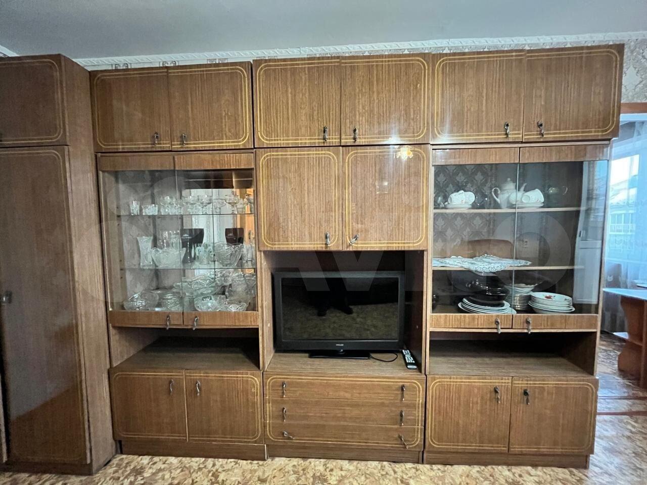 Из мебели в квартире: диван, стол журнальный - трансформер, стол письменный, стол обеденный, пенал для белья, стулья, табуретки, два кухонных стола и кухонных шкафа.