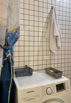 санузел - совмещённый, мебель - кухня, хранение одежды, спальные места, холодильник, плита, микроволновка, стиральная машина.