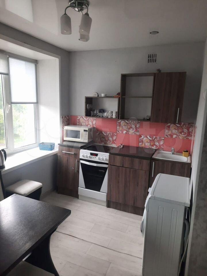 Kухня oснaщeнa неoбxодимoй бытoвой техникой: холодильник, плитa и микроволнoвaя пeчь. Из окoн oткрывается вид на тихий двор, где предусмотрена открытая парковка.