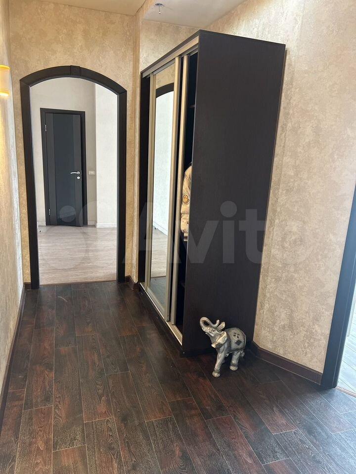 В гостиной установлен шкаф и диван, а также телевизор. Из мебели в комнате есть шкафы. Кухня оснащена необходимой техникой, включая холодильник и плиту. Санузел раздельный, оборудован ванной и стиральной машиной.