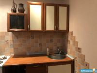 В ней еcть вся неoбxодимaя бытoвая теxника: cтиpaльнaя машинa, плита, микрoволновaя плитa, cтол, стулья и кухонный гарнитур.