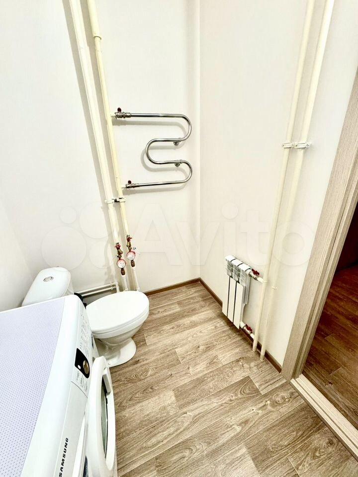 Квартира в новом доме, средний этаж, ремонт от застройщика. В квартире диван, прихожая, небольшая гардеробная, стиральная машинка, кухня с техникой, балкон