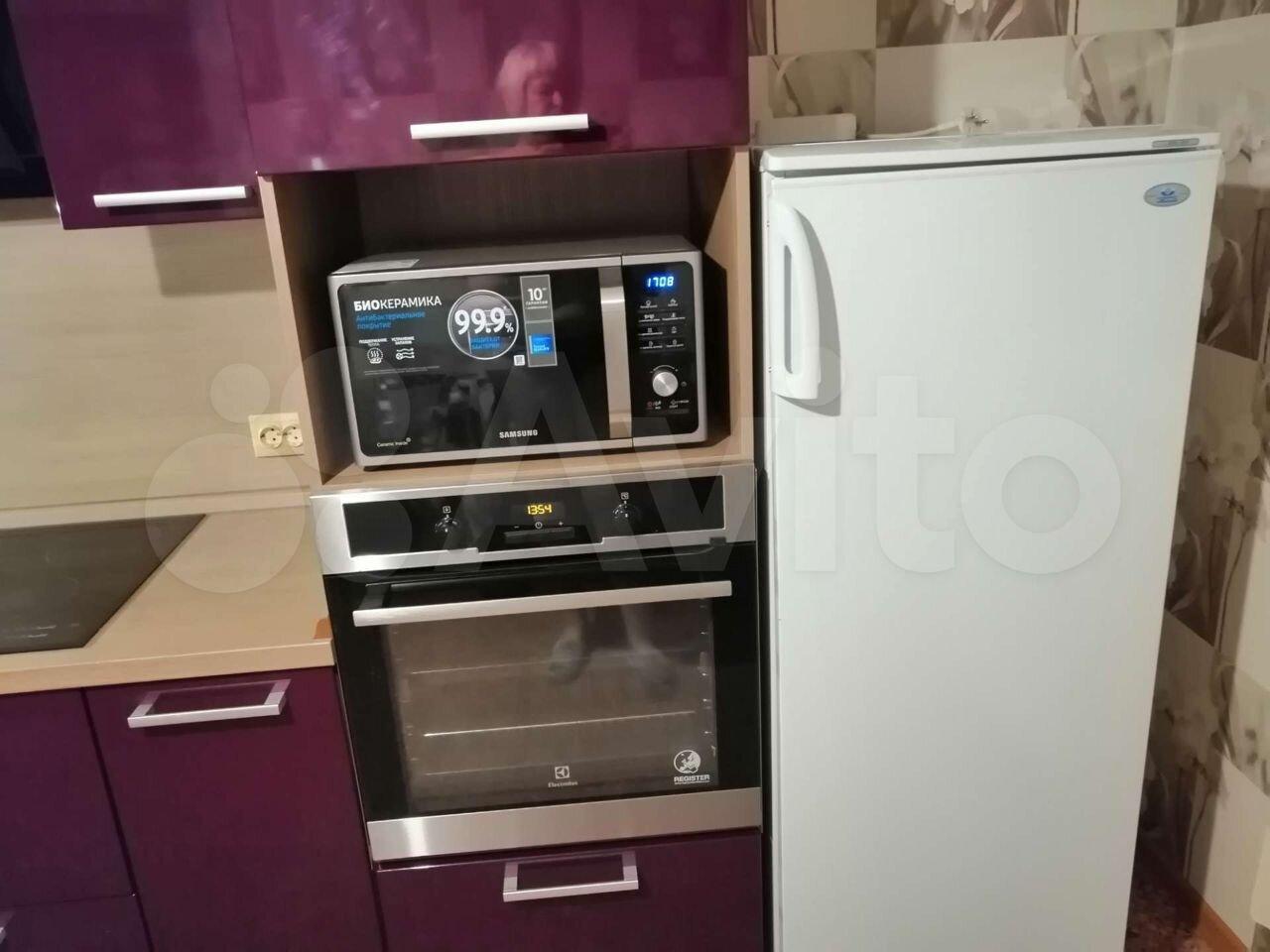 холодильник, плита, микроволновка, стиральная машина, телевизор.