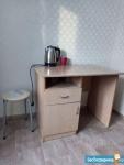 Секция римского типа:коридор 6кв,санузел совмещён(унитаз,душ),комната 16кв с большим окном,теплая.Есть необходимое для жизни:шкафы для одежды,стол письменный,2хспальная кровать,миникухня(навесной шкаф,рабочий стол,стол с табуретками),холодильник,печка.