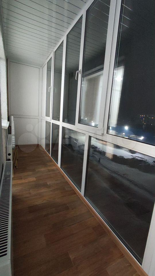 Лоджия широкая,застеклена с подогревом,что позволяет использовать ее как дополнительное пространство для отдыха или хранения вещей. Вид из окон открывается на городскую панораму.