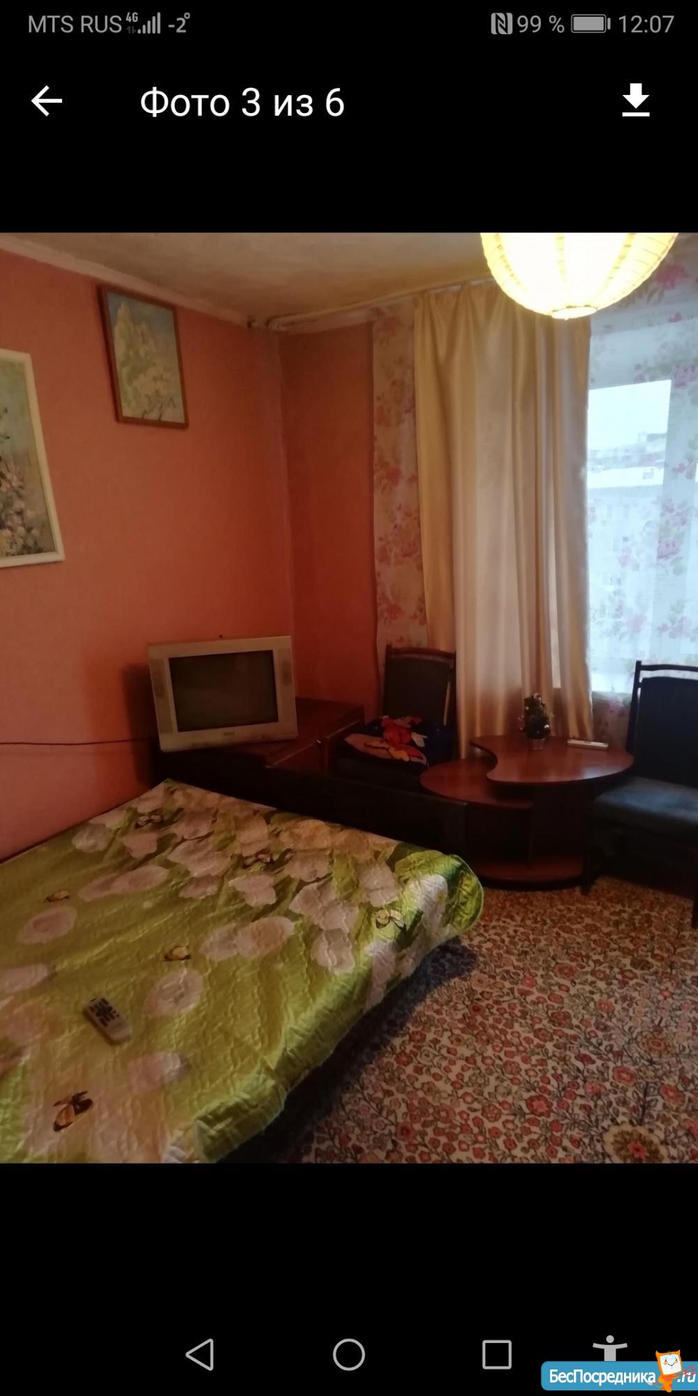 СРТ по ул. Кузнецова 4/1 общая площадь 24 кв. Жилая 16 кв., комната большая, светлая, солнечная сторона, пластиковые окна, балкон застеклен. Квартира мебелированная, имеется кухня, холодильник, стиральная машина, диван, шкаф, стол. Туалет и душ раздельно. Окна выходят на Губернский рынок. На длительный срок, оплата 10000 т. р. плюс по счетчикам (свет и вода)