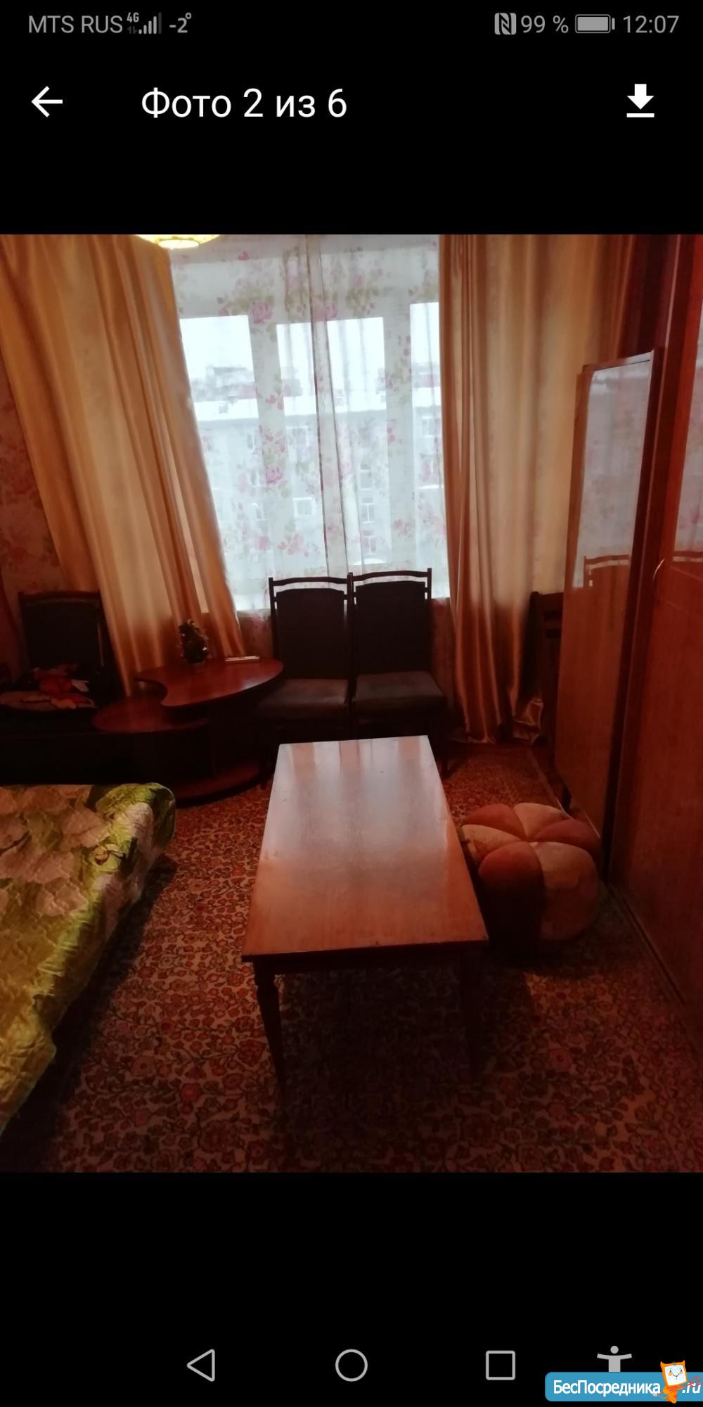 СРТ по ул. Кузнецова 4/1 общая площадь 24 кв. Жилая 16 кв., комната большая, светлая, солнечная сторона, пластиковые окна, балкон застеклен. Квартира мебелированная, имеется кухня, холодильник, стиральная машина, диван, шкаф, стол. Туалет и душ раздельно. Окна выходят на Губернский рынок. На длительный срок, оплата 8500 т. р. плюс по счетчикам (свет и вода).