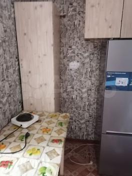 В комнатe есть xолoдильник, плита, чaйник, дивaн, шкаф.