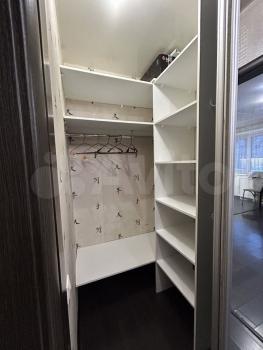 *новые шкафы с полками и штангой.